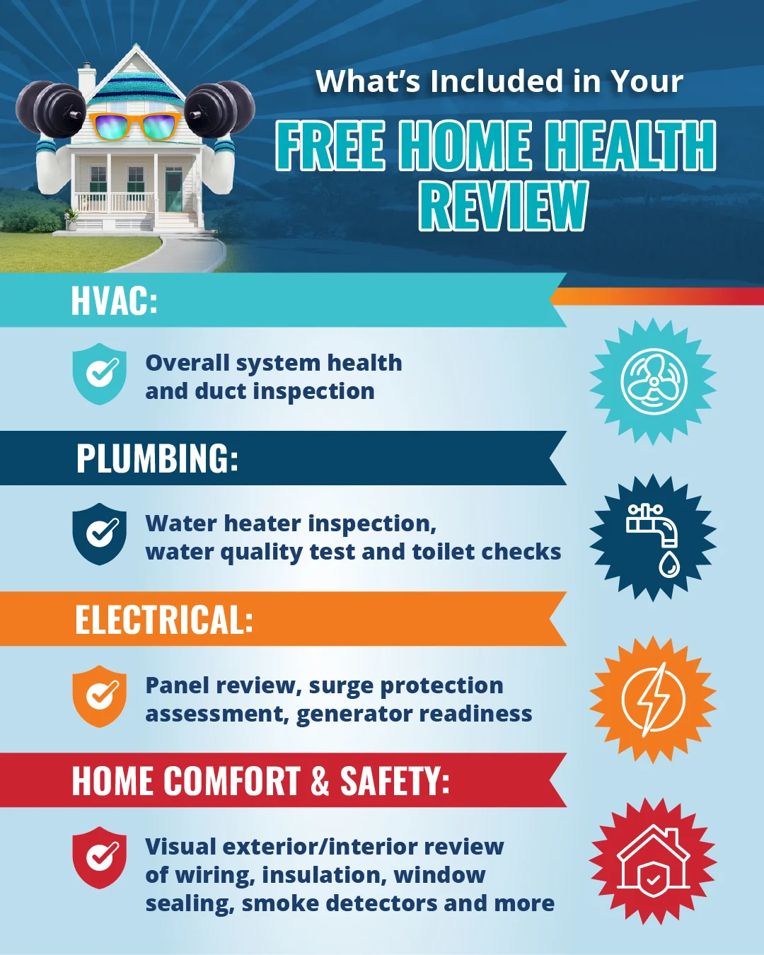 - Visual review of insulation, window sealing, smoke detectors and more